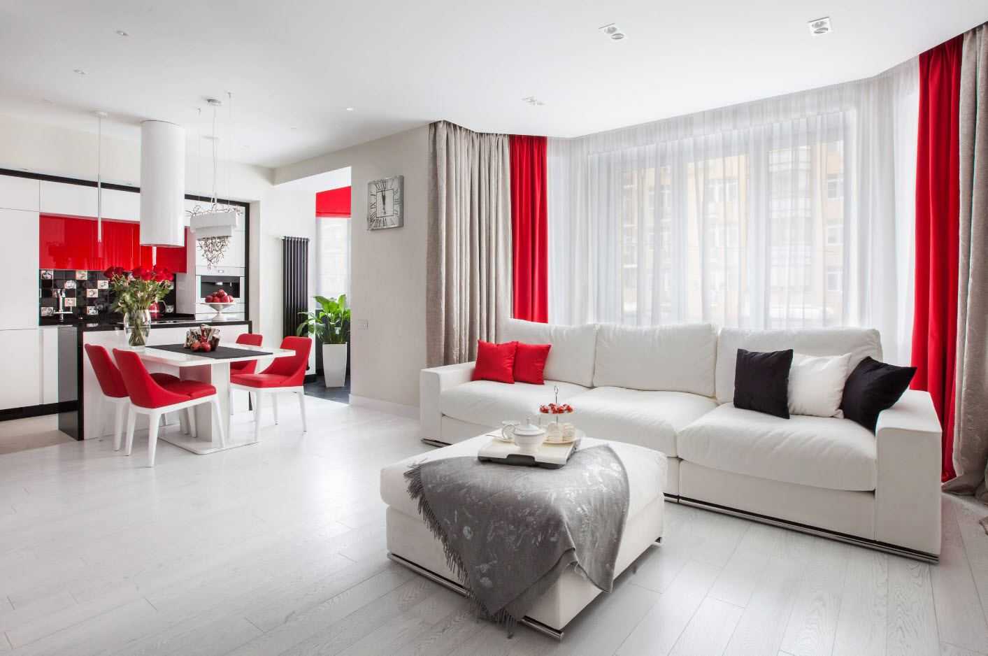 Превосходно комбинируются с остальными окрасами. Белая квартира может быть дополнена любыми оттенками, при этом дизайн станет более динамичным, оригинальным