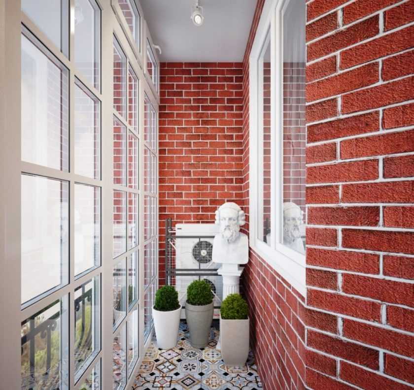 Камень искусственного происхождения представляет собой разновидность керамической плитки. Его эксплуатационные характеристики рассчитаны на перепады температур и повышенную влажность, поэтому отделка балкона камнем считается рациональным решением.