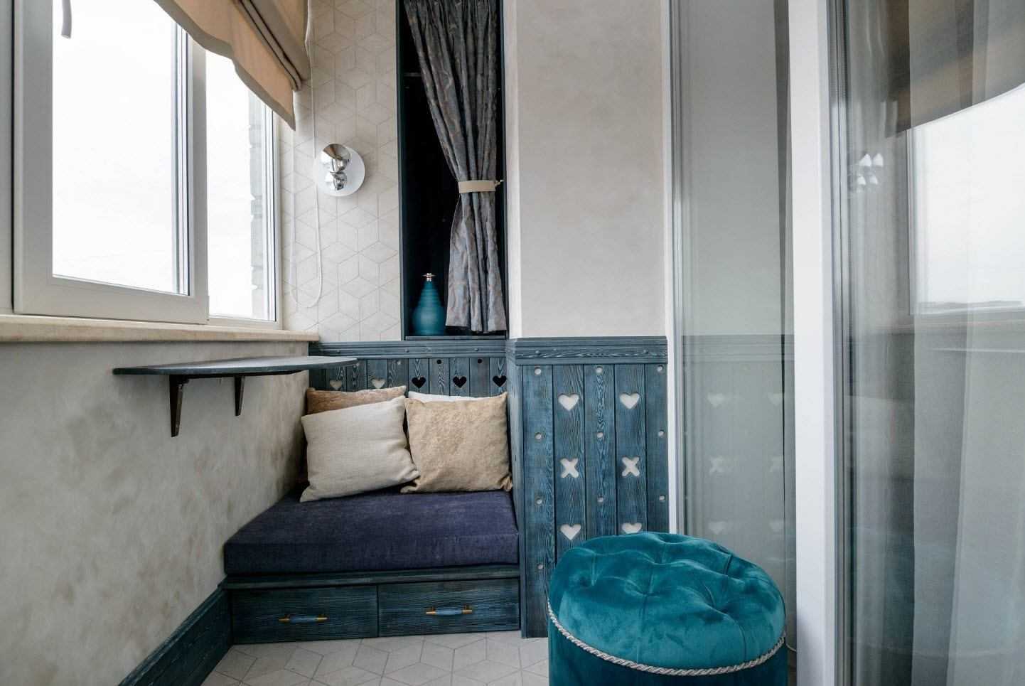 Необычный дизайн лоджии в квартире, фото показывает дизайн интерьера непрямоугольного помещения 8 кв м