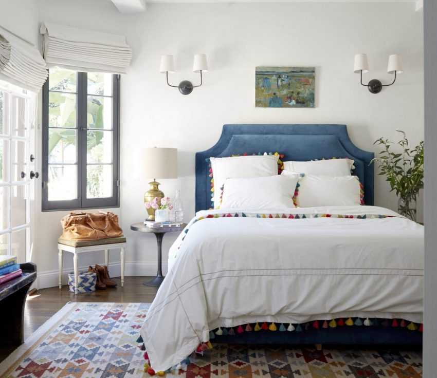 Внести изюминку в интерьер спальни помогут декоративные элементы (текстиль, подушки, мебельная обивка, аксессуары) насыщенных, глубоких оттенков: винного, изумрудного, кобальтового, шоколадного, фиолетового. Они будут прекрасно смотреться на контрасте с базовой светлой палитрой.