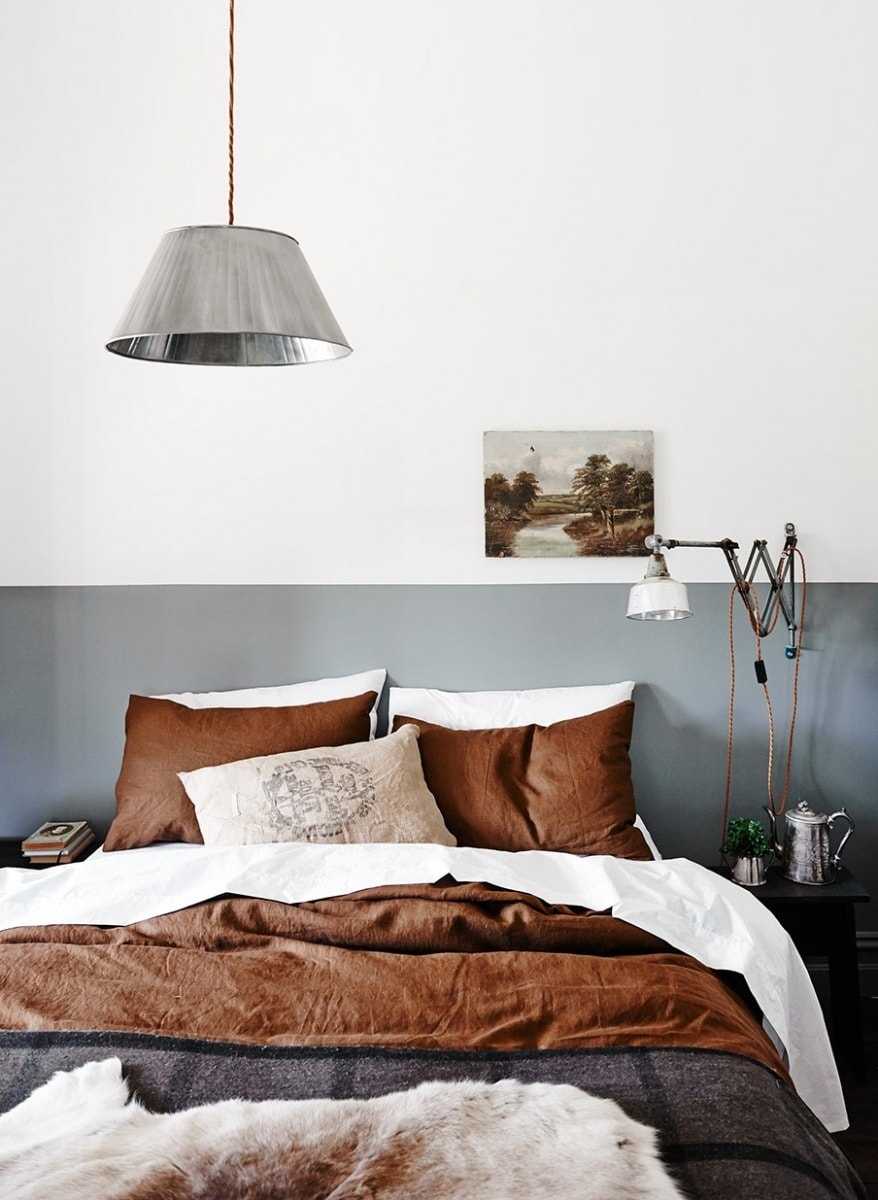 Если же всё-таки Вы захотели сделать спальню темных цветов, то не стоит забывать о наличии светлых предметов.