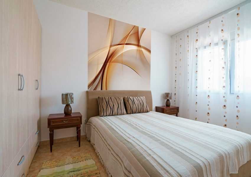 Для разнообразия атмосферы помещения стоит акцентировать внимание на одной из стен, лучше за изголовьем спального места.