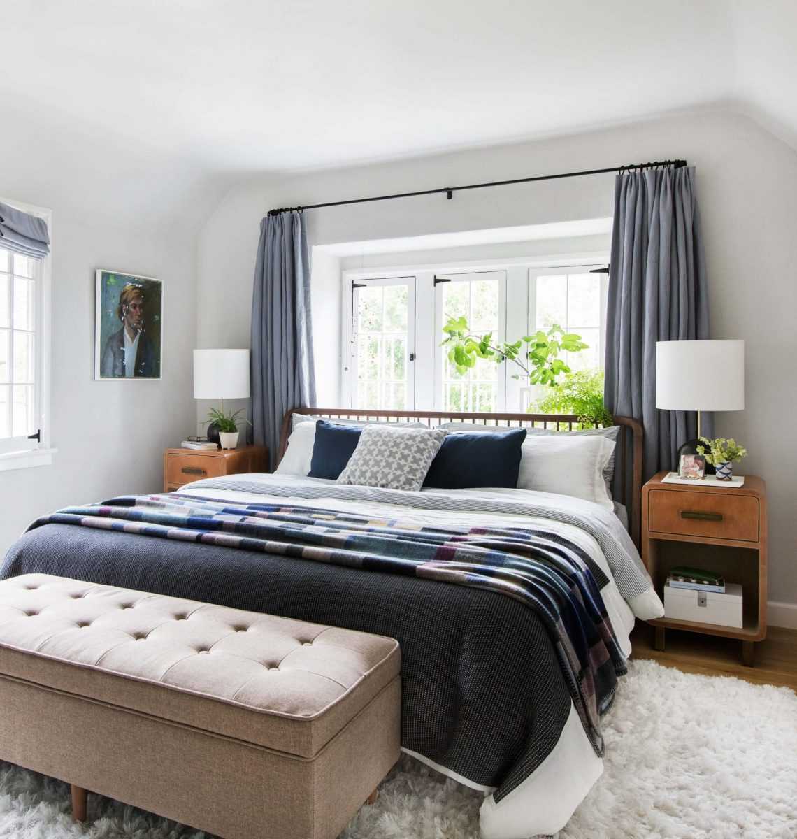 Небольшой пуфик или скамеечка также необходимы в комнате для сна. Существует мнение, что нельзя сидеть на том, где спишь. Многие стараются этой позиции придерживаться.