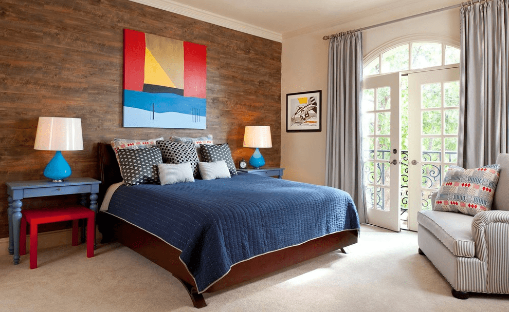 Передать всю красоту этого оттенка несложно. Для этого достаточно создать яркий акцент в зоне над кроватью. Боковые плоскости можно украсить обоями светлого тона или использовать технику плавного перехода. Подобные краски должны присутствовать в других деталях дизайна для создания комфорта.