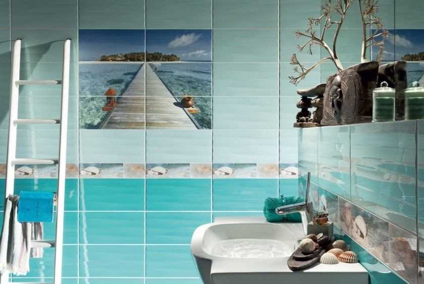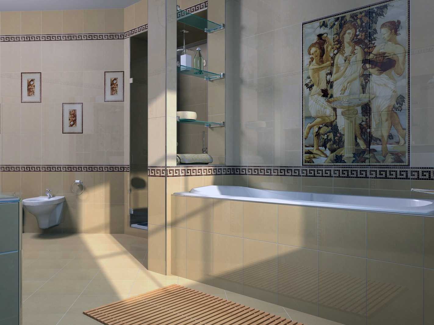 В-третьих, на этапе выбора плитки необходимо определить, будете ли вы использовать на стене в ванной комнате такие украшения, как печать на стекле или настенная роспись. Если это так, стоит применить приглушенные плитки, которые будут основой для отображения графического элемента.