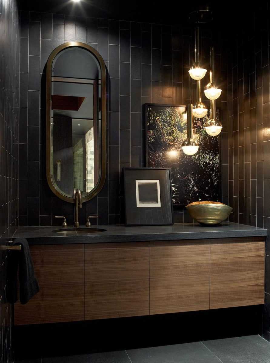 Выбор отличного освещения — самая важная вещь для черной ванной комнаты. Не жалейте точек света. Помещение должно быть пропитано действительно большим количеством светлых расцветок, чтобы темные поверхности не поглощали все освещение.