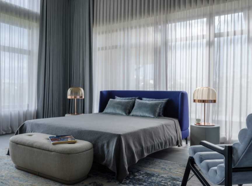 Что касается подобной вариации, то здесь дизайнеры делают ставку на сдержанность, характеризующую серый оттенок, и привлекательность, присущую голубому