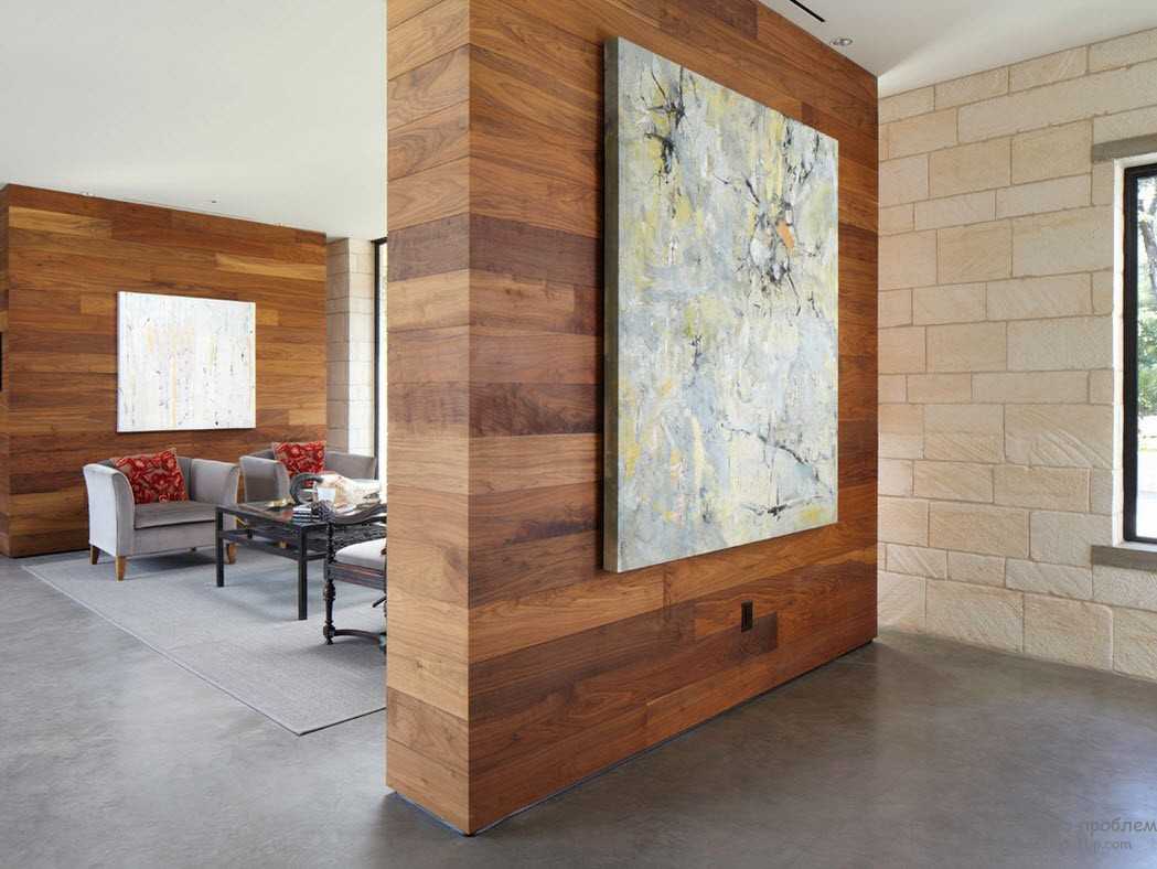 Дерево также отлично сочетается с природным камнем (либо искусственным, но внешне похожим на натуральный материал). Подобное сочетание древесины и камня не только сделает интерьер уникальным, но и прослужит долгое время. Дерево в интерьере может использоваться как элемент декора в следующих вариантах: