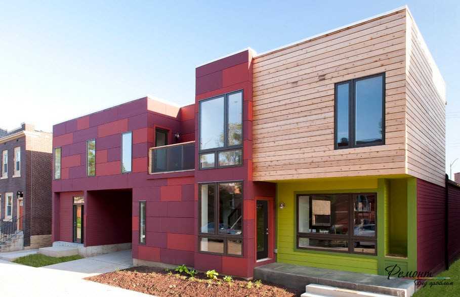 окраска разными красками возможна только для многоэтажных домов с разными архитектурными украшениями, иначе небольшая постройка будет визуально «раздробленной»;