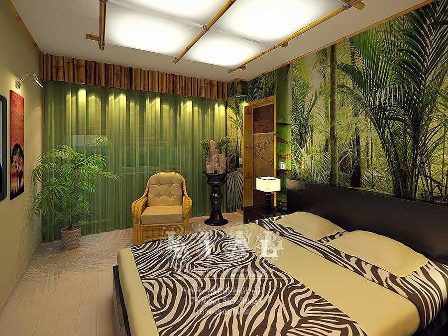 Стебли бамбука на потолке, легкая плетеная мебель, плед с узором «зебра», фотообои с природными мотивами и обилие сочных зеленых красок — отдых в спальне с такими характеристиками всегда будет напоминать о путешествиях по диким зарослям Южной Америки или Австралии. Экомотивы в интерьере комнаты для сна позволят вам почувствовать себя обитателем заброшенного лесного домика или владельцем загородной виллы с завораживающими видами из панорамных окон. Для полноты ощущений остается добавить лишь домашний фонтанчик или установить небольшую пальму.
