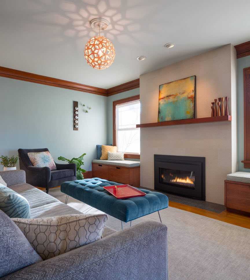 Такой вариант подходит для классического стиля в гостиной. Этот приём только входит в моду, он не избит и с каждым годом будет становится всё более популярным.