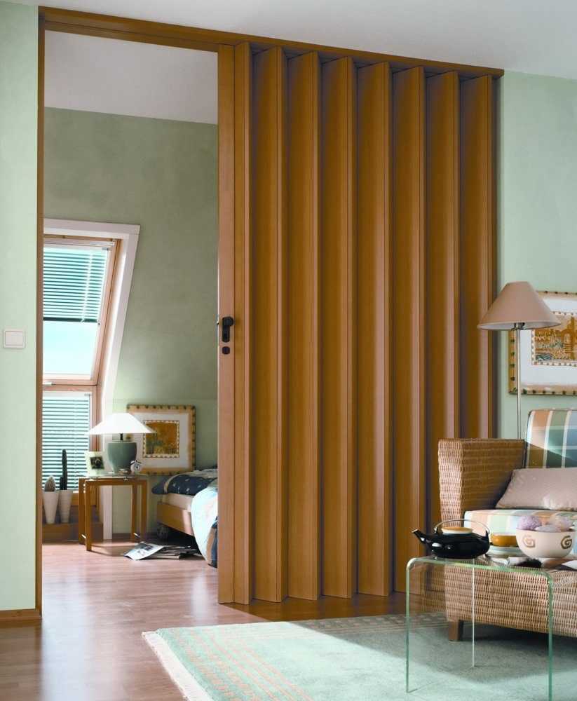 Дизайнерские решения показывают, что раздвижная «гармошка» превосходно смотрится между кухней и столовой, а также это приемлемое решение для гардероба. «Книжку» выбирают для библиотеки или комнаты-кабинета.