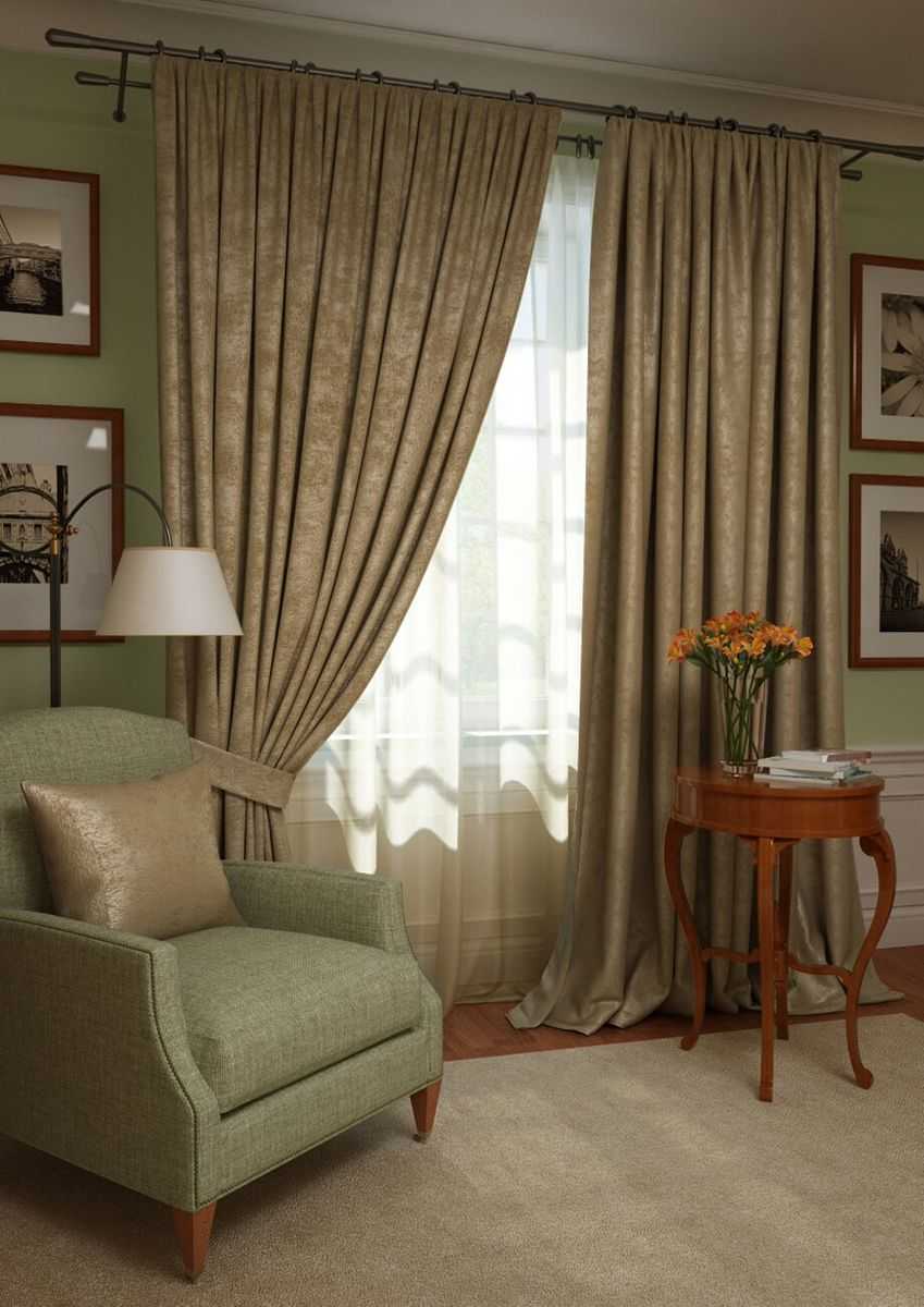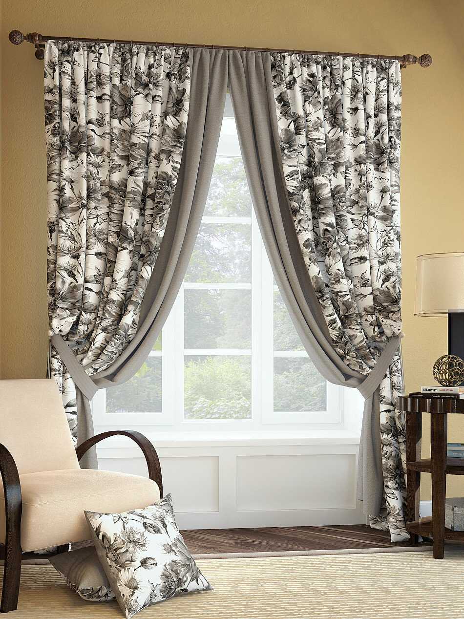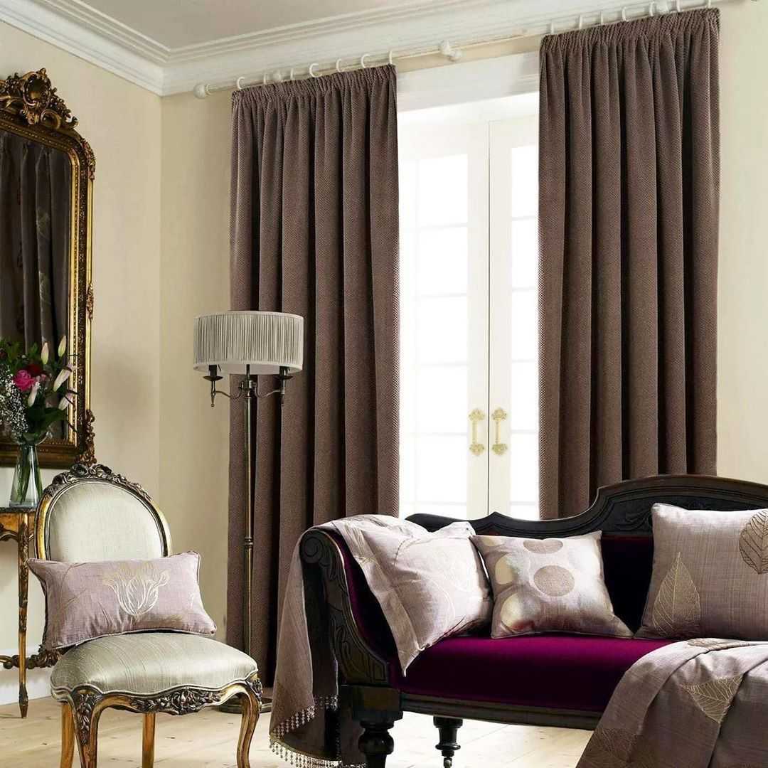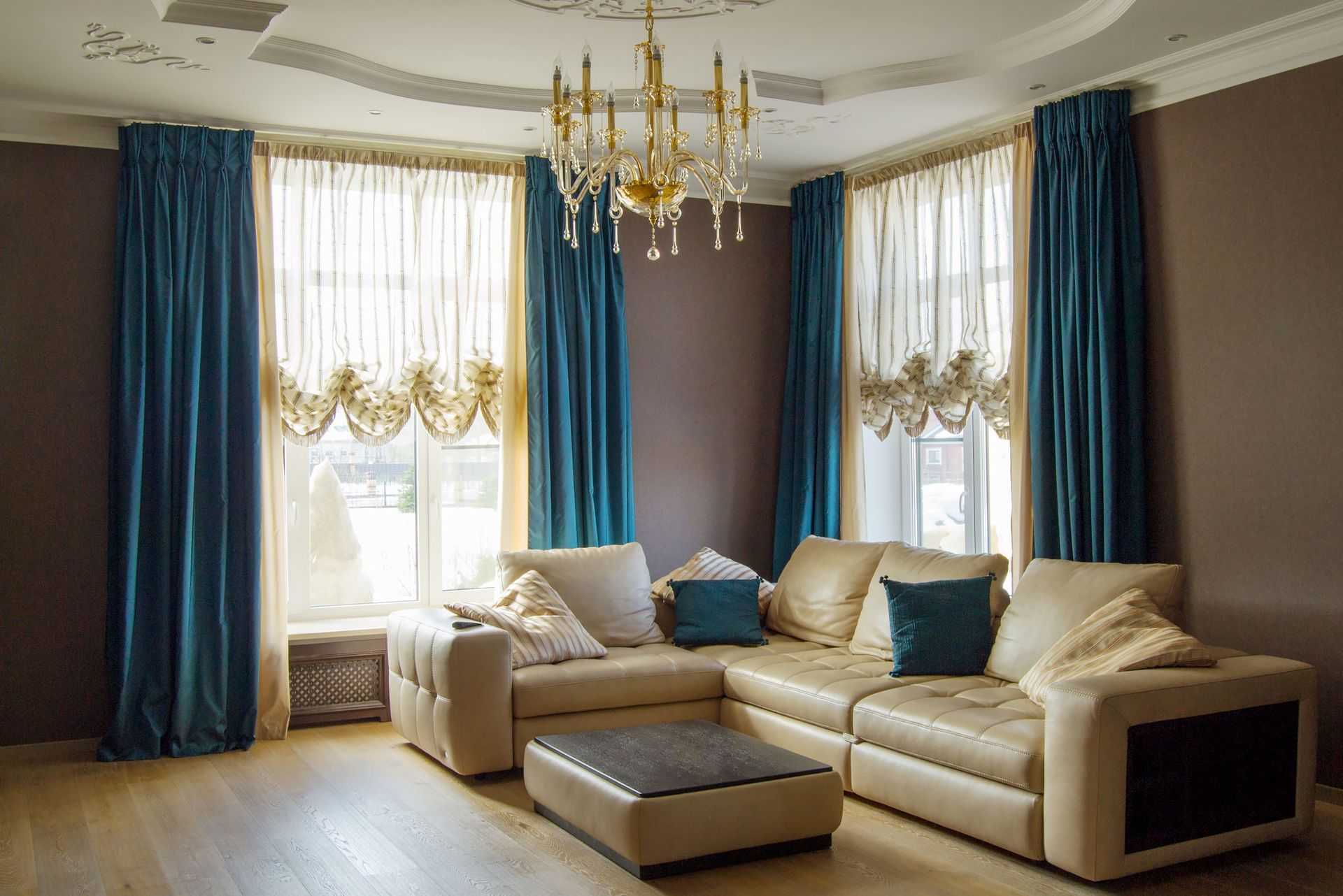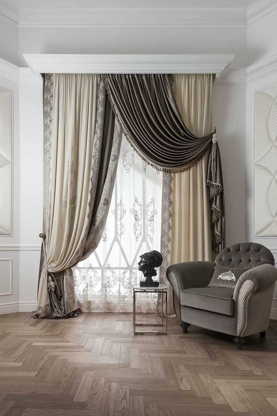 Портьеры в интерьере гостиной: разные типы комбинаций