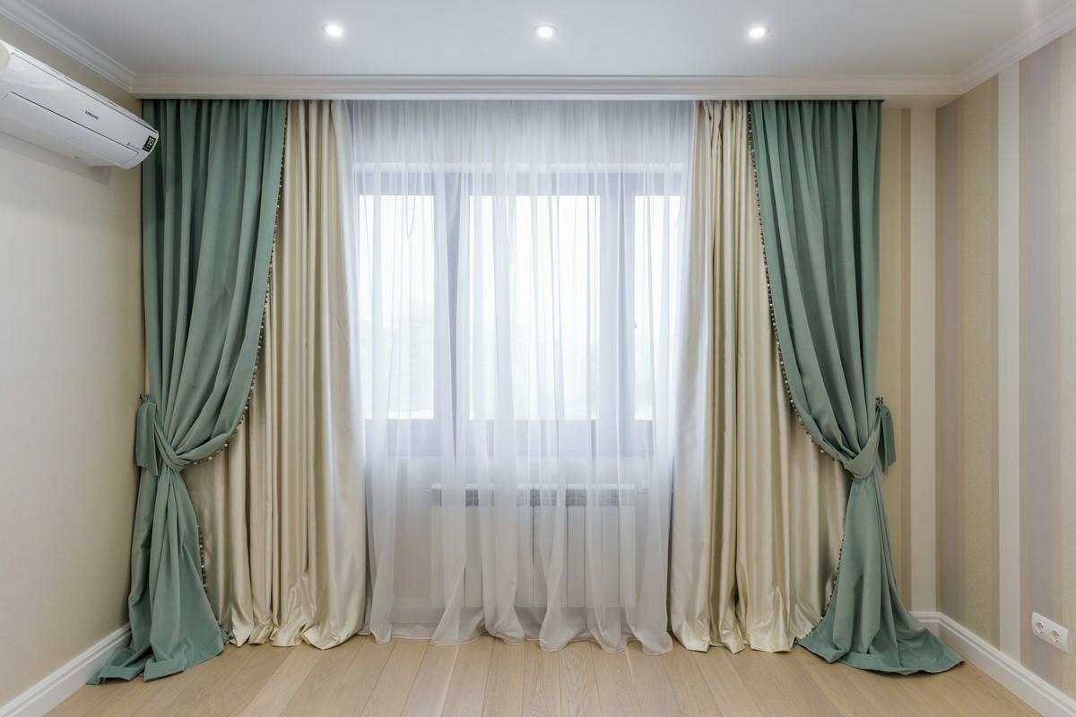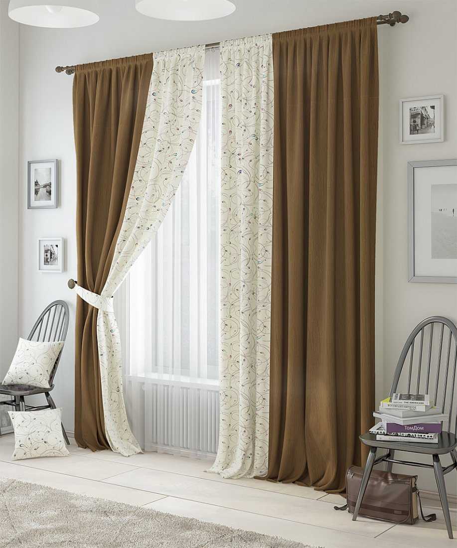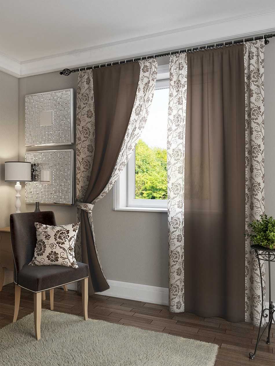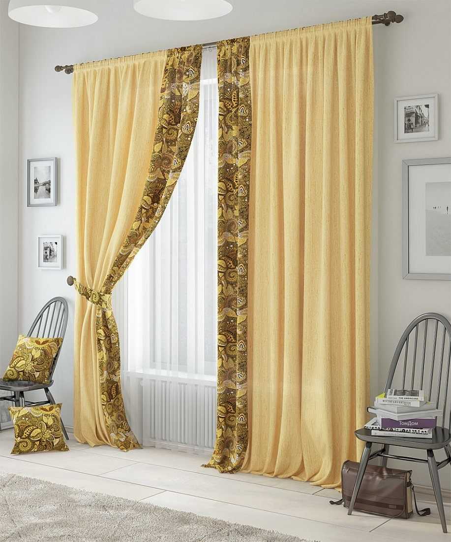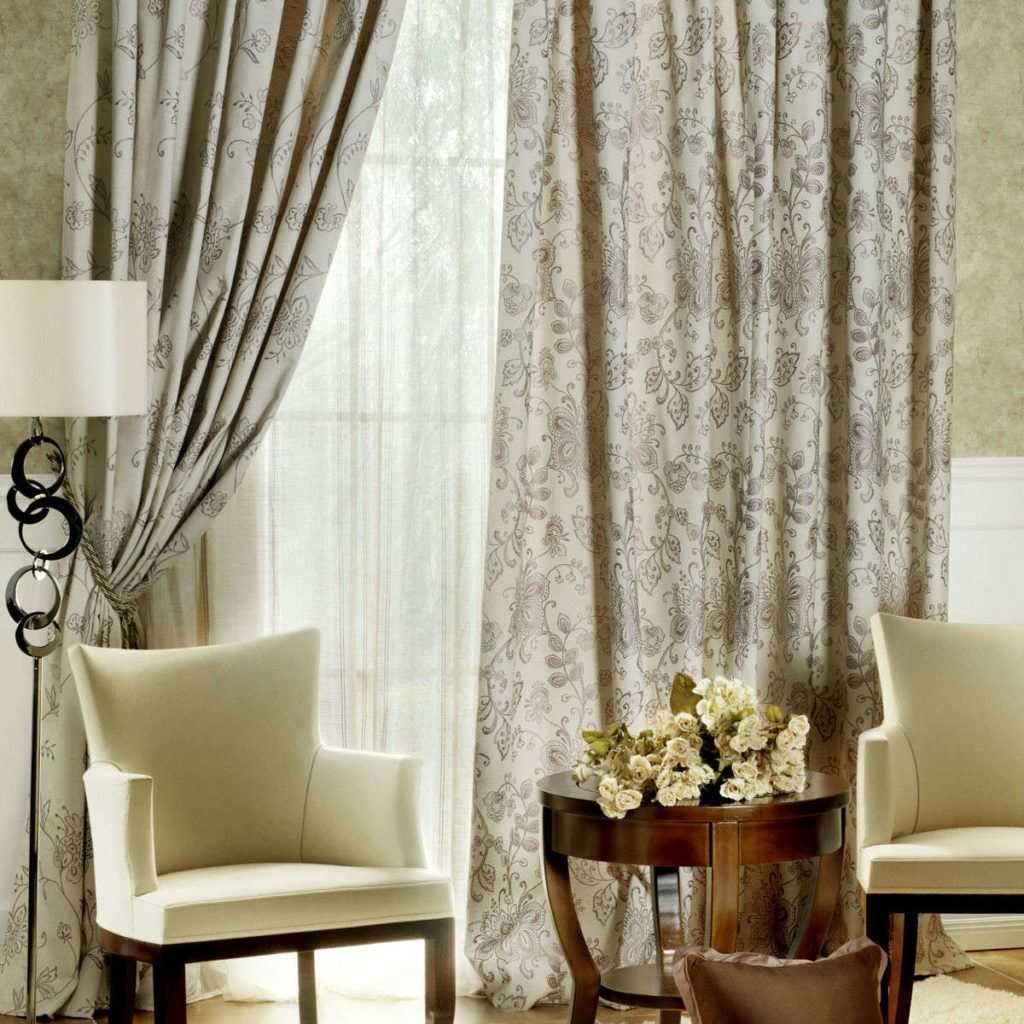 Портьеры в интерьере гостиной: разные типы комбинаций