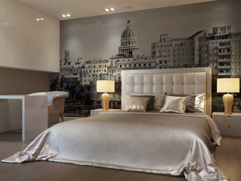 Сюжеты на урбанистическую тематику подойдут для спален, оформленных в стиле хай-тек, лофт и модерн. Рисунки такого типа редко включают яркие и броские акценты, поэтому вам будет проще подобрать сюжет, соответствующий цветовой гамме комнаты. Изображения городской архитектуры, мостов, парков и дорог лучше разместить за изголовьем кровати.