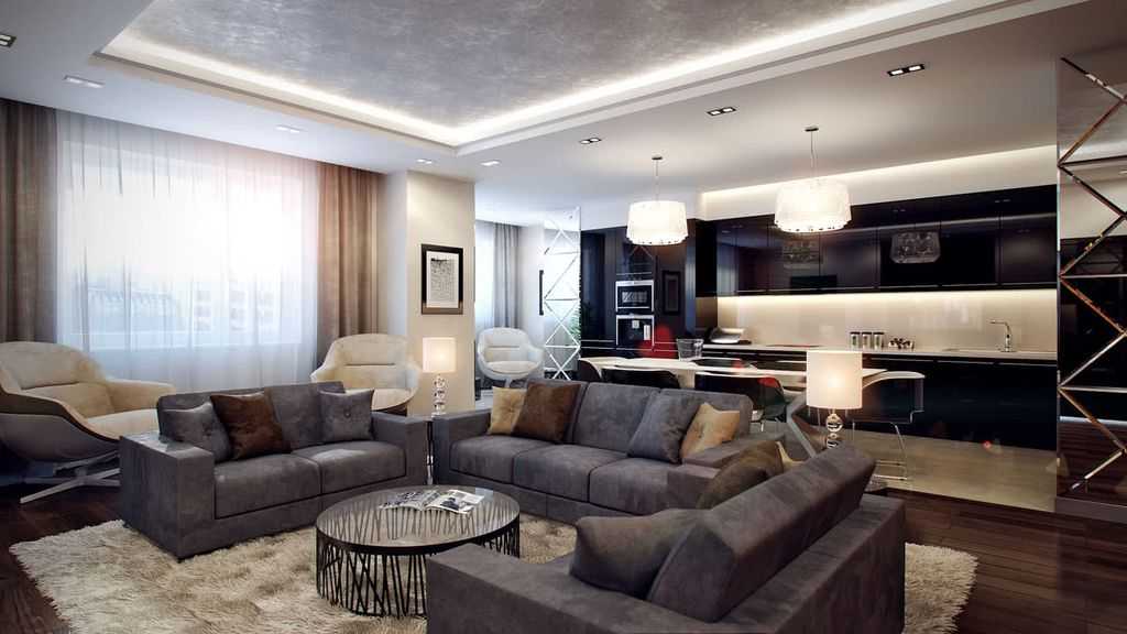 Существуют универсальные оттеночные решения, которые способны придать интерьеру кухни, переходящей в гостиную по-настоящему стильный и модный облик.