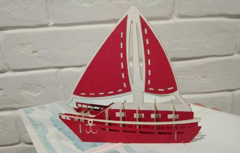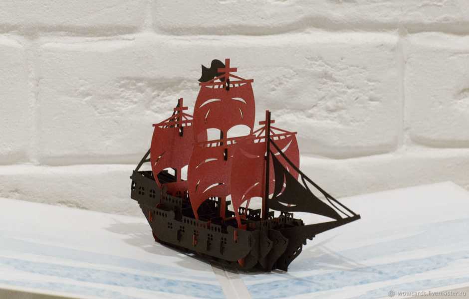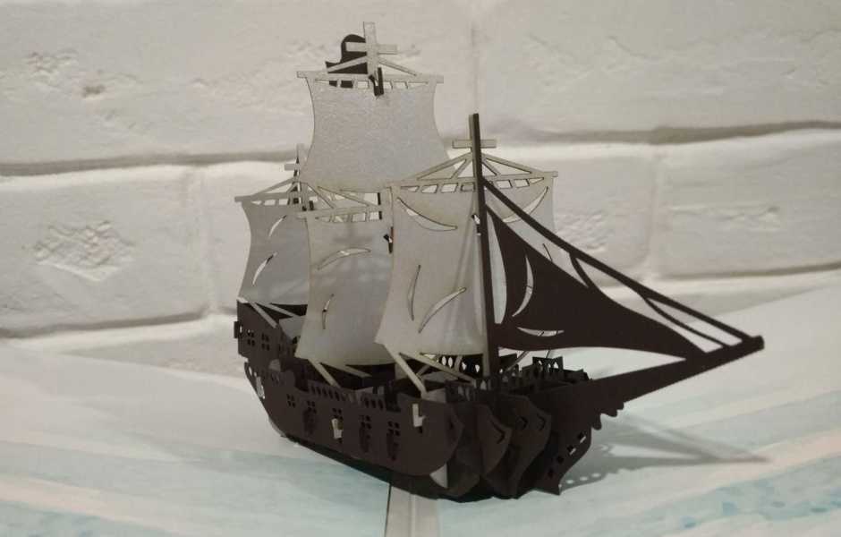 Мастерская Wowcards из Санкт-Петербурга уже более пяти лет специализируется на открытках, приглашениях и календарях с объёмными фигурами. Делают их в том числе на заказ, так что, при желании, сувенир может быть брендирован. Среди готовых вариантов фигур, которые можно найти в онлайн-магазине мастерской, есть и большие парусники.