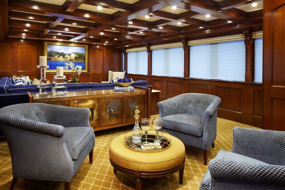 Натуральность материалов внутренней отделки будоражит воображение, особенно представителей Greenpeace… Все потому, что личные апартаменты и гостевые каюты украшены редчайшими материалами, такими как кожа ската, тиковое дерево. Стены массажного кабинета обтянуты шкурами рептилий и леопардов, и даже кушетка отделана телячьей кожей.