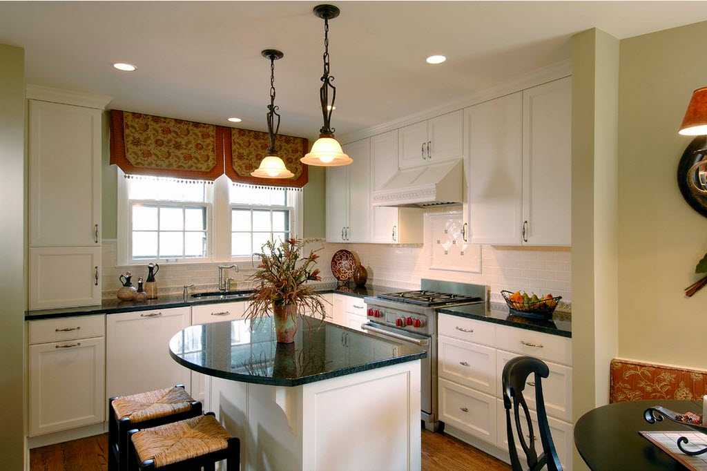 Чем больше искусственного света на кухне, тем лучше. В идеале нужно снабдить освещением каждую зону небольшого пространства: один центральный светильник, бра около обеденного стола, точечное освещение рабочей зоны.