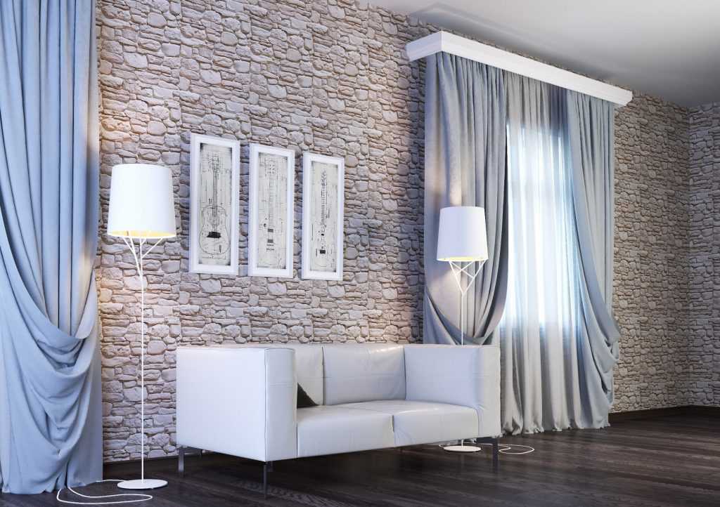 Полностью отделывать гостевую комнату одним материалом не принято. Оболочка из ПВХ комбинируется с разными видами покрытий. Современный стиль в гостиной достигается с помощью эффектных переходов. Например, одна из стен обшита доской, а остальные «поставлены» в контрастный с ней цвет. В гостиной актуально использование панелей «под» кожу, кирпич, камень и дерево. 3D вариант панно на потолок – возможность значительно «увеличить» высоту комнаты. Такие же дизайнерские приемы используются на перегородках, арках, колоннах и других элементах помещений. Панели отлично подчеркивают горизонтальные ниши, которые все чаще встречаются в гостиных. Плиты в форме плитки используются для создания особого дизайна, с соединениями под разными углами, на разных уровнях и со встроенным освещением. В этом случае выбор часто падает на панели с рисунком натурального или искусственного дерева.