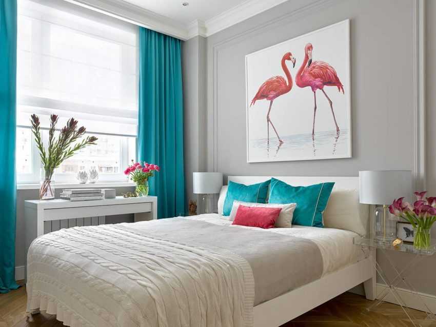 Для молодой пары можно выбрать полотна с изображением пар птиц или животных. Если вы выбираете изображения людей, не берите слишком реалистичные портреты, они вызывают ощущение, что в спальне есть кто-то еще.
