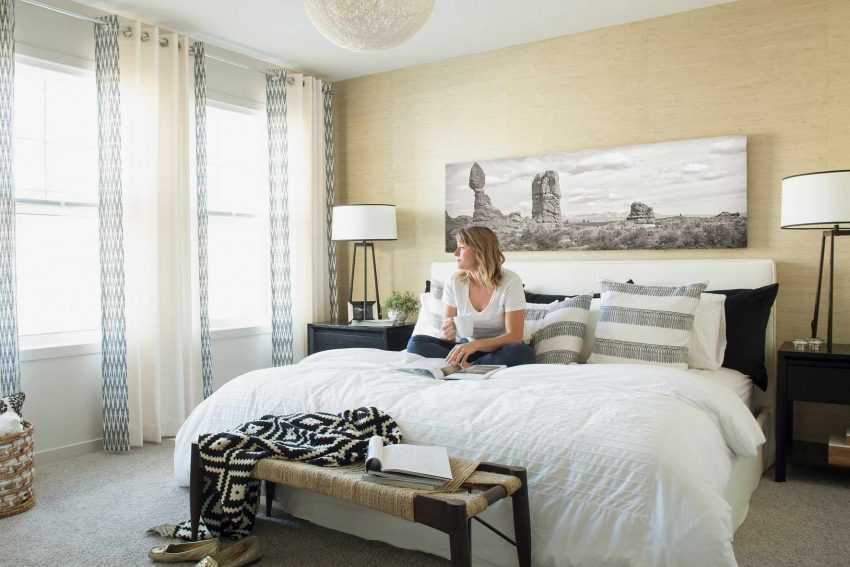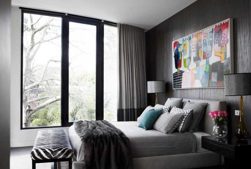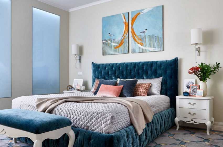 Стена у изголовья кровати — одна из наиболее важных акцентных площадок, однако это пространство не всегда используется рационально. Так, например, в этой области не следует использовать контрастные цвета, так как это создает дополнительную зрительную и психологическую нагрузку, которая будет мешать человеку расслабиться.