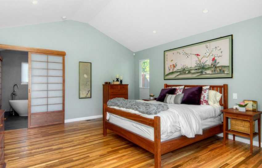Спальня – место уединения 2 влюбленных людей. В ней должны находиться исключительно вещи, способствующие укреплению взаимоотношений. Китайская философия домашней гармонии относит к таковым и картины.