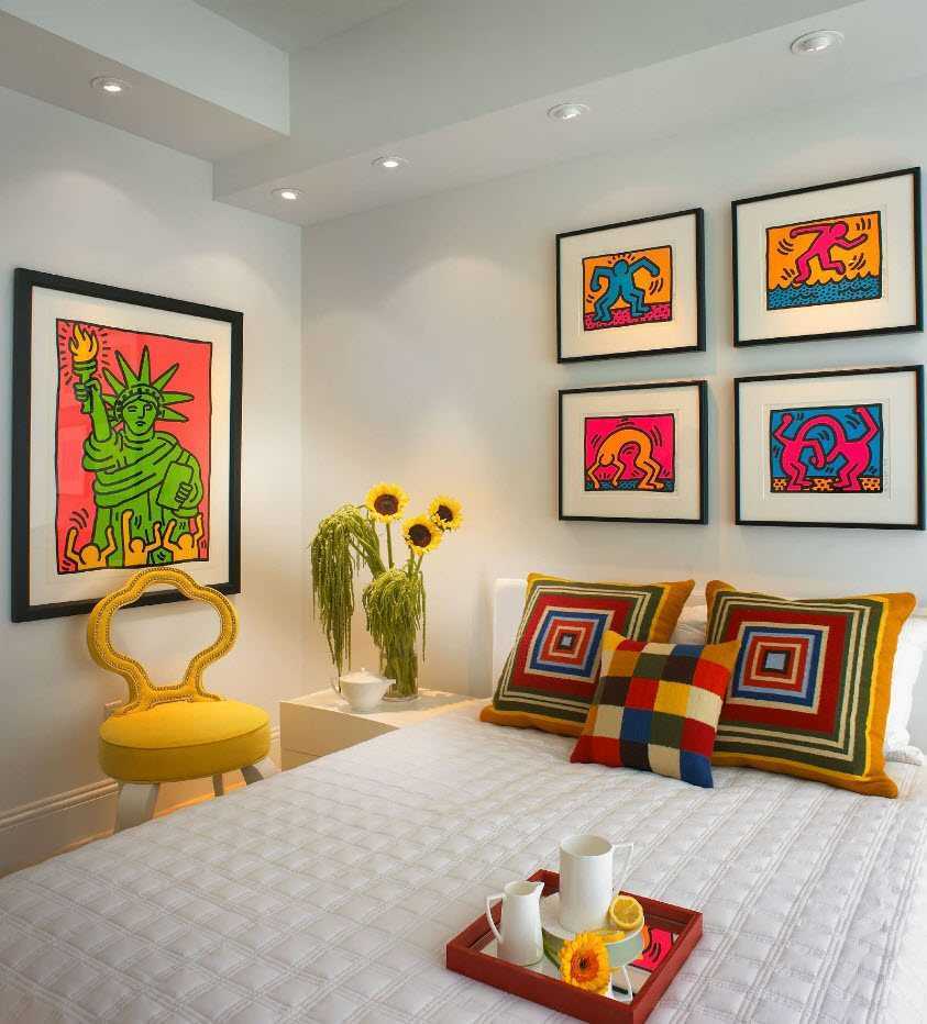 В спальную комнату лучше повесить картины пастельных тонов вместо ярких и вызывающих. Светлые полотна создадут атмосферу покоя и легкости. Стилизованные под сепию изображения впишутся идеально. С эпатажными и брутальными элементами декора лучше экспериментировать в гостиной или на кухне. Если это спальня семейной пары, то можно разместить что-нибудь романтическое и оригинальное (цитата о любви из песни любимой рок-группы, например).