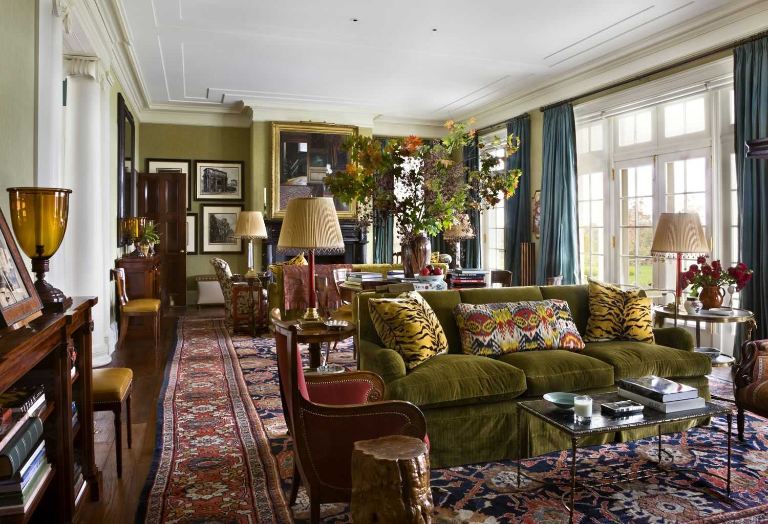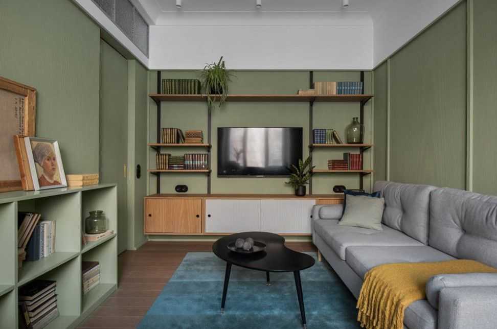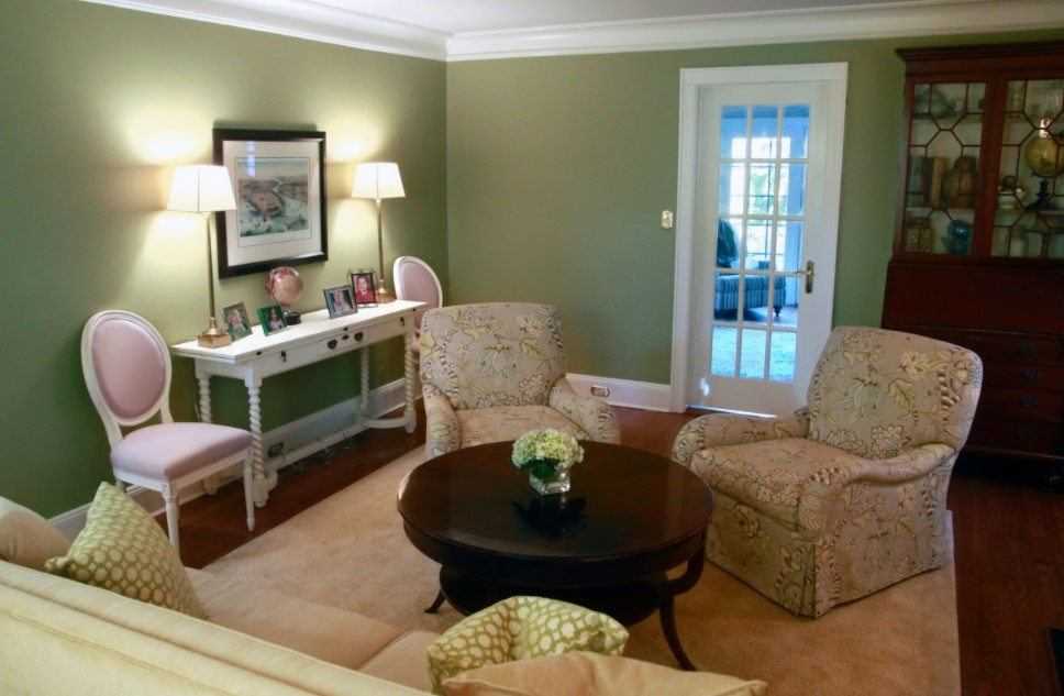 В природе оливковый – это цвет неспелых маслин и его палитра насчитывает множество оттенков, начиная от самых бледных, заканчивая достаточно тёмными. Если же говорить об использовании оливкового в интерьере помещений, а в нашем случае это гостиная комната, то здесь дизайнеры выделяют три основных варианта с оригинальными названиями: пресс-салат, плакучая ива и мох.
