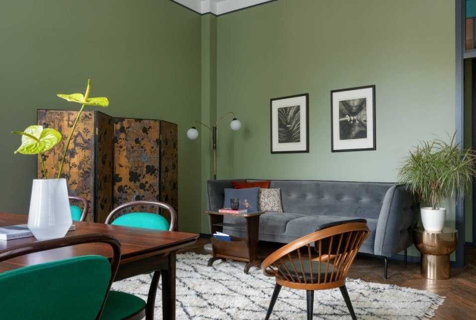 Подобная идея сочетания подчеркнёт зелёный и сделает его более выразительным. А всевозможные комбинации оливкового и серого, как правило, используются для отделки стен, встречаются в текстиле, окрасе мебели и чудесно вписываются в стилистику хай-тека или модерна.