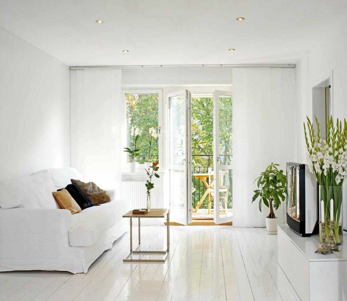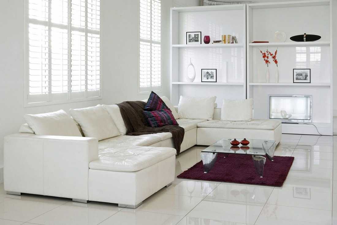 Гостиная — белый пол