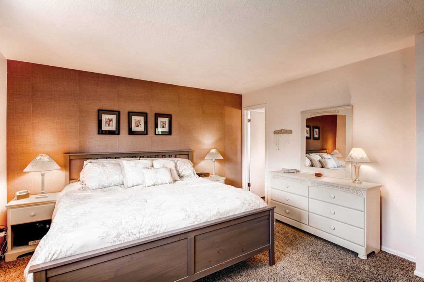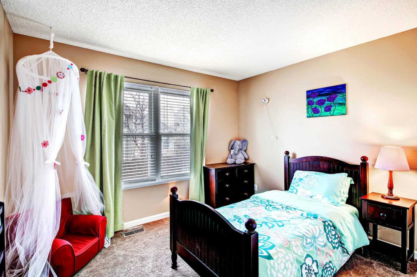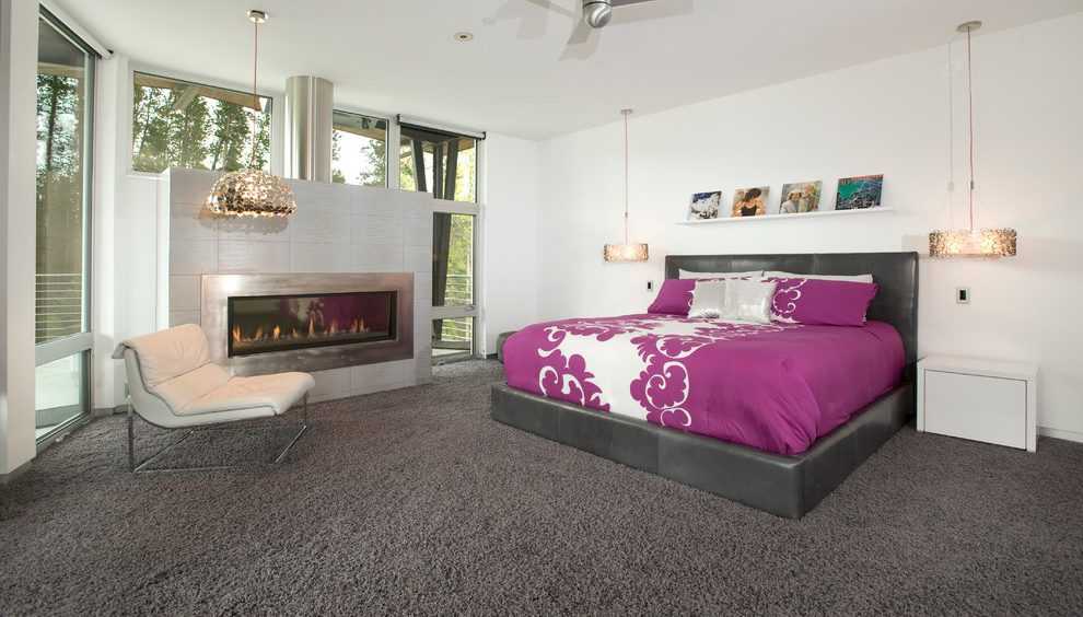Хорошо в спальне смотрится однотонный ковролин с ворсом среднего размера. Если ворс будет выше, он может оттянуть на себя слишком много внимания