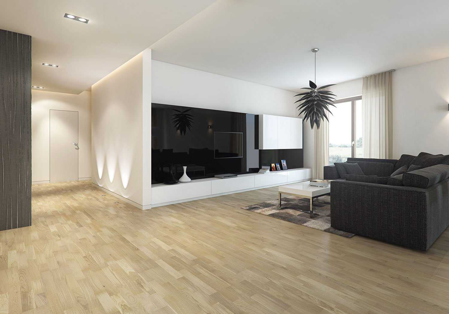 Пол в гостиной должен отражать хороший вкус жителей и идеально сочетаться с остальным оборудованием. Ковры, покрывающие всю поверхность пола, остались в прошлом, а современные интерьеры могут позволить себе только небольшой текстиль под журнальным столиком. Поэтому идеальным решением для гостиной является использование деревянного пола, который придаст интерьеру элегантности и стиля.