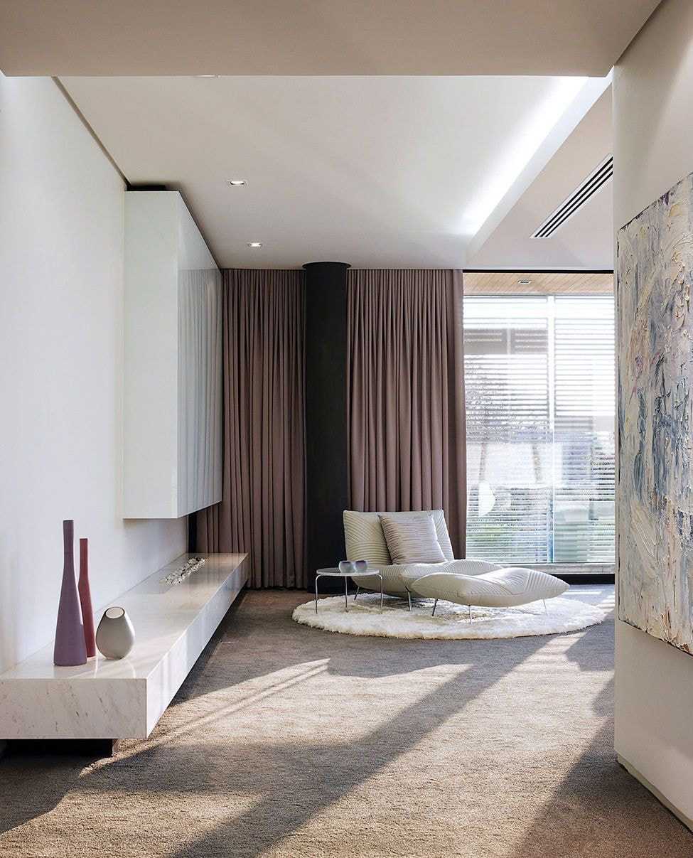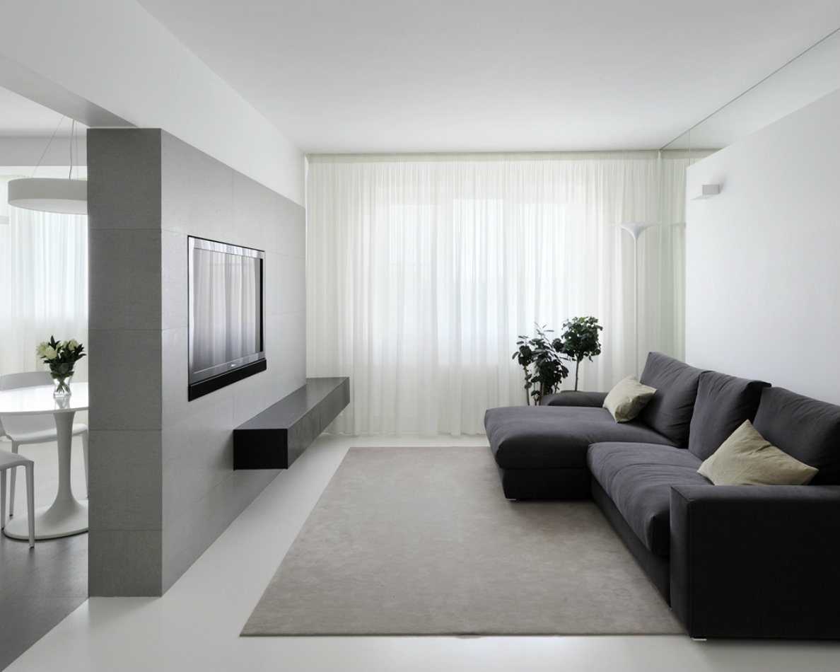 Для стен в контемпорари чаще всего используются самые базовые и общедоступные материалы с гладкой однотонной фактурой. Достаточно обычной краски в белых, серых или других сдержанных тонах. Акценты, ниши, колонны, сложные гипсокартонные конструкции – все это вовсе не обязательно.