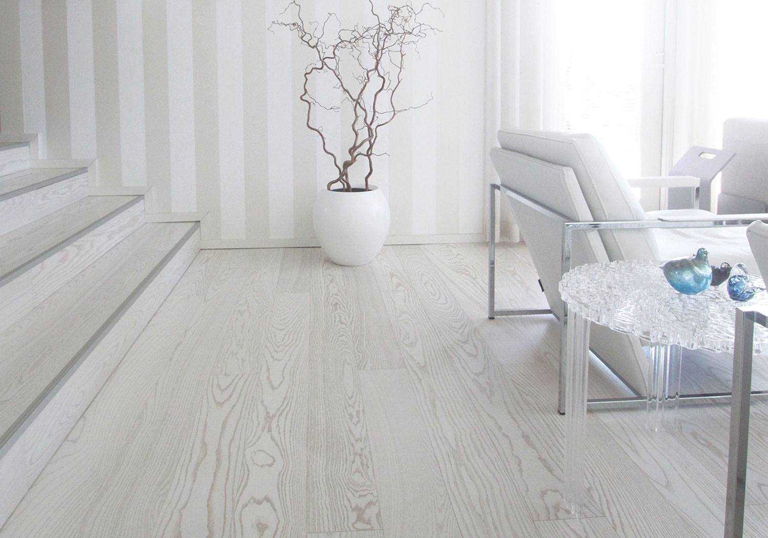 Мода на выбеленные полы пришла к нам из Скандинавии. Отбеливание включает в себя покрытие досок слоем особого вида масла или краски для полов, которые затем покрываются лаком. Отбеленные деревянные полы яркие, они всегда выглядят свежо и чисто.