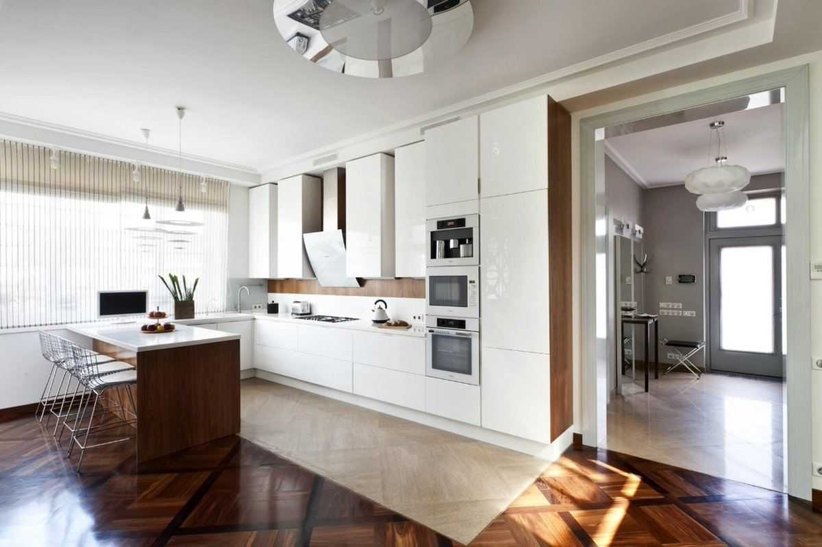 Деревянный пол на кухне — экологично и презентабельно