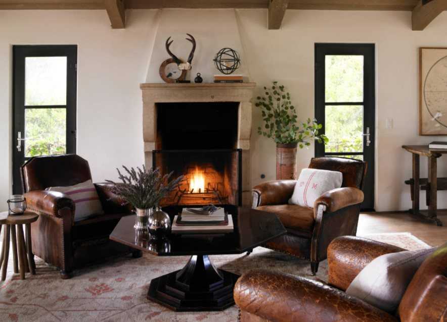 Как интегрировать черный диван в гостиную с деревенскими акцентами