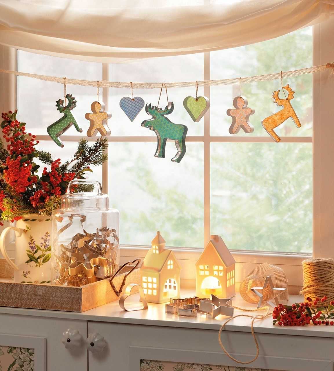 Когда уже стиль оформления комнаты определен, самое время приступать к созданию декора своими руками. Рекомендуем начинать с определенной зоны, постепенно украшая все помещения. Вначале предлагаем оформить окна. Для этого можно использовать бумажные гирлянды или оригинальные подвески со светящимися лампочками.