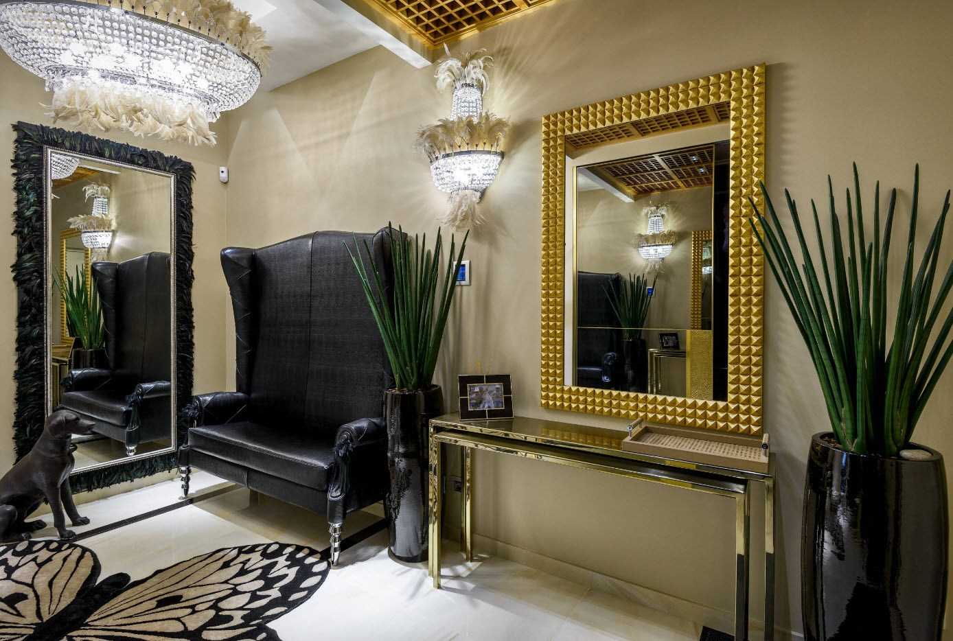 Главным элементом декора в прихожей выступает зеркало