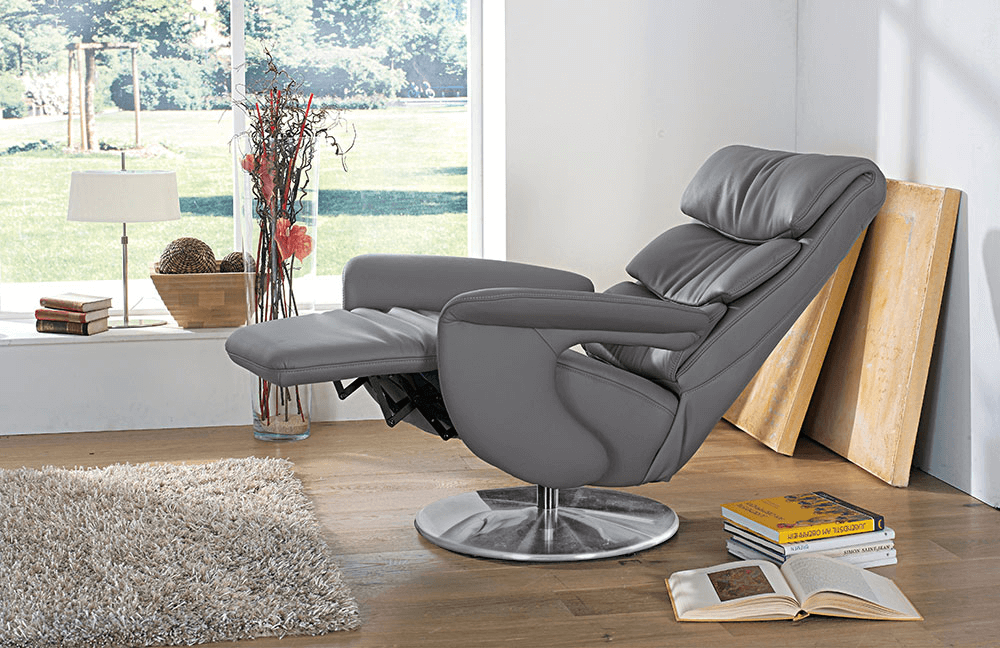 - Реклайнеры – современное направление в мире мягкой мебели. Это кресла с возможностью менять положение спинки для максимального комфорта. Большинство изделий оснащены подставкой для ног. Люксовые модели имеют дополнительные функции – различные виды массажа, подогрев сидения, сохранение пользовательских настроек положения.