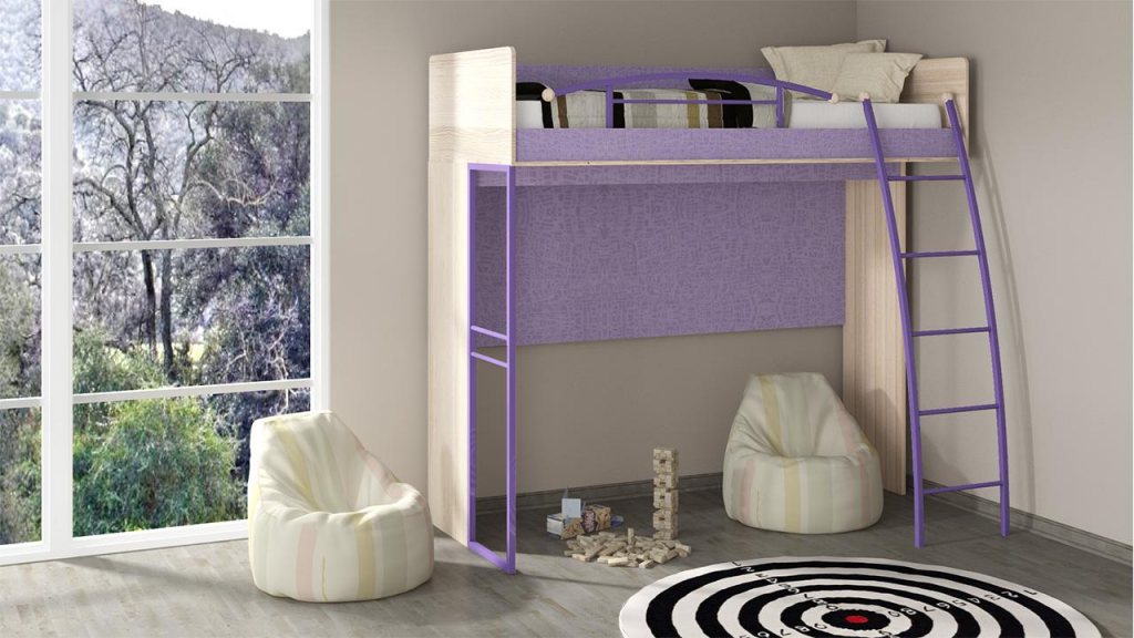 Это не стандартный предмет мебели, и главное отличие в том, что спальное место обустроено на втором этаже, а забраться к нему нужно по лестнице. Под ним – на первом этаже – может размещаться: