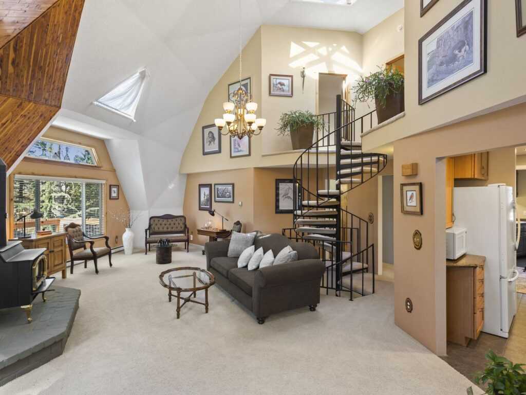Потолкам отведена не последняя роль в дизайне круглых гостиных. Выполняются они в светлых тонах (чаще белых), благодаря чему визуально увеличивают высоту комнаты, наполняют ее атмосферой чистоты и гармонии. Если комната не круглая по своей форме, то потолок, как правило, имеет округлую форму, которая достигается благодаря современным отделочным материалам. Очень часто круглые гостиные имеют потолки совершенно нестандартной формы, с различными уровнями и геометрическими фигурами.