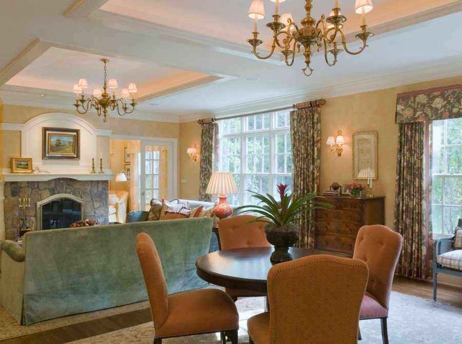 Для большинства традиционно используемых стилей, от кантри до прованса, подойдут подвесные люстры для гостиной, если, конечно, позволяет высота потолка.