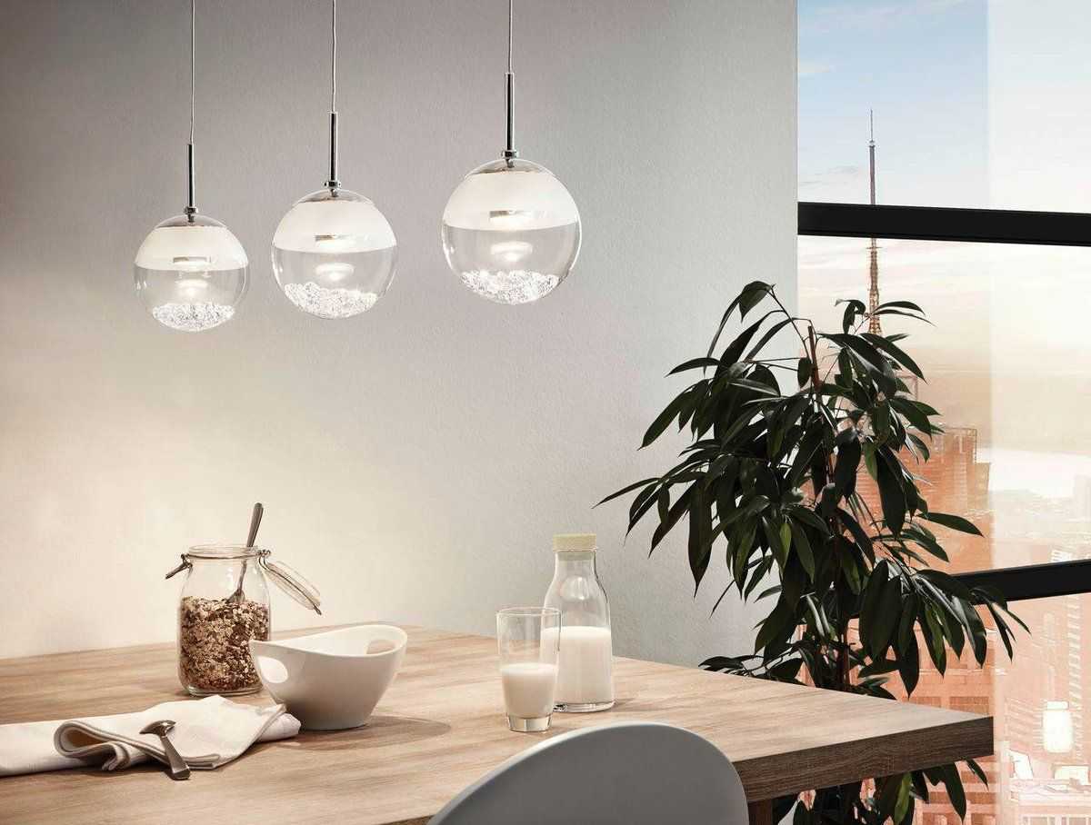 Хотите сделать свой интерьер кухни более привлекательным? Вы можете легко достичь цели благодаря правильно подобранному освещению. Можно разместить на шнуре люстру интересной композиции, например, современную подвесную лампу с открытой структурой и геометрической формой. Благодаря механизму регулировки кабеля вы можете изменить длину осветительного прибора в соответствии с личными предпочтениями. Такой акцент поможет интерьеру кухни произвести впечатление на ваших гостей. Кухня может быть украшена одноточечной лампой на крупногабаритном шнуре — в качестве основного декоративного элемента комнаты, а также практичной люстрой с множеством источников света, которые будут идеально соответствовать дизайну помещения.