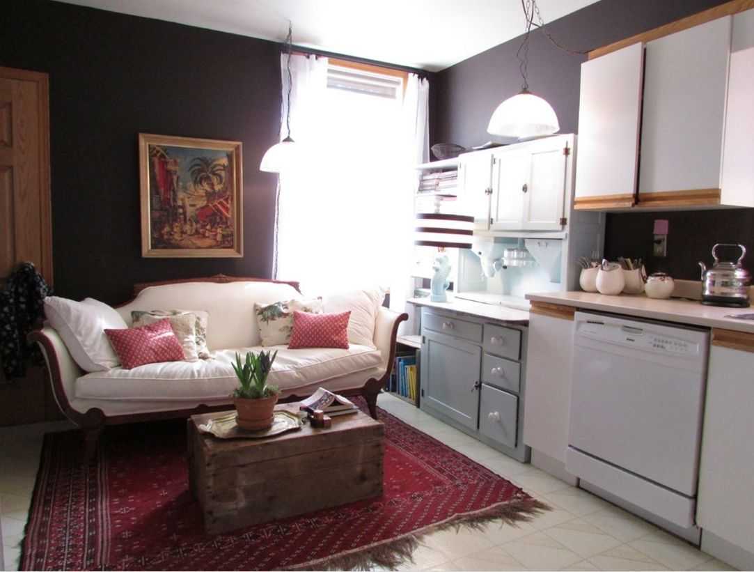 Для небольшой кухни. Интерьер кухни 9 кв м с диваном можно оформить совершенно по-разному, если помещение квадратное (3х3 м) или вытянутое (например, 2х4,5 м).