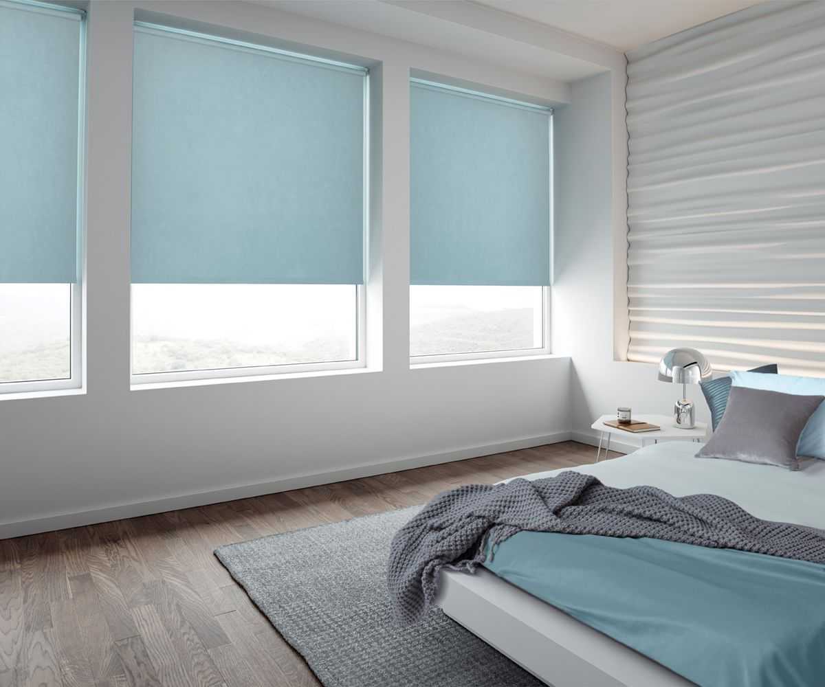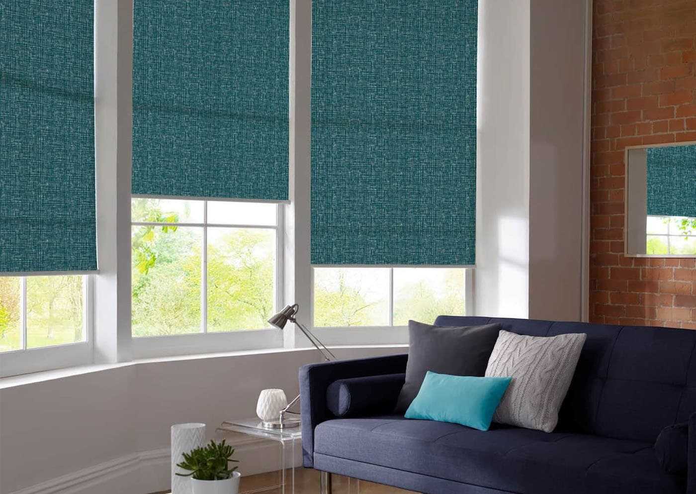 Синие римские шторы на светлом фонеИсточник modernplace.ru