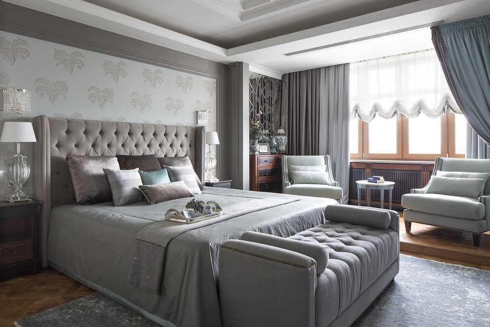 Психологи утверждают, что серая палитра действует успокаивающе на человека и помогает ему расслабиться. При использовании подобной гаммы в спальне необходимо постараться полностью раскрыть ее. Шторы в таких красках не подходят для соединения со слишком сочными и яркими декоративными элементами или пытаться контрастировать с цветом обоев.