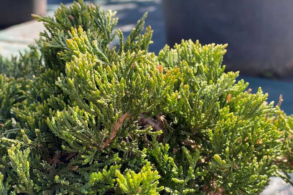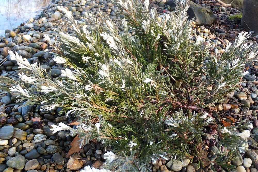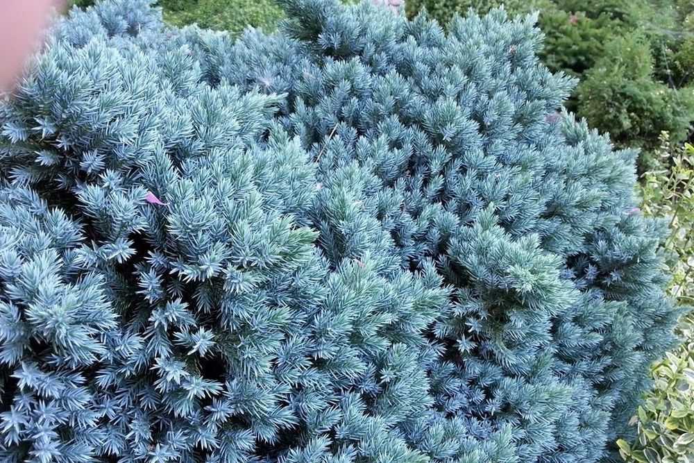 Красивый небольшой кустик с зеленовато-голубой хвоёй из чешуек. Максимально возможный размер можжевельника — 30 см в высоту и полтора метра в диаметре.
