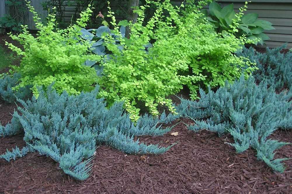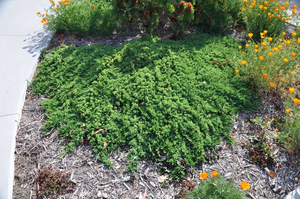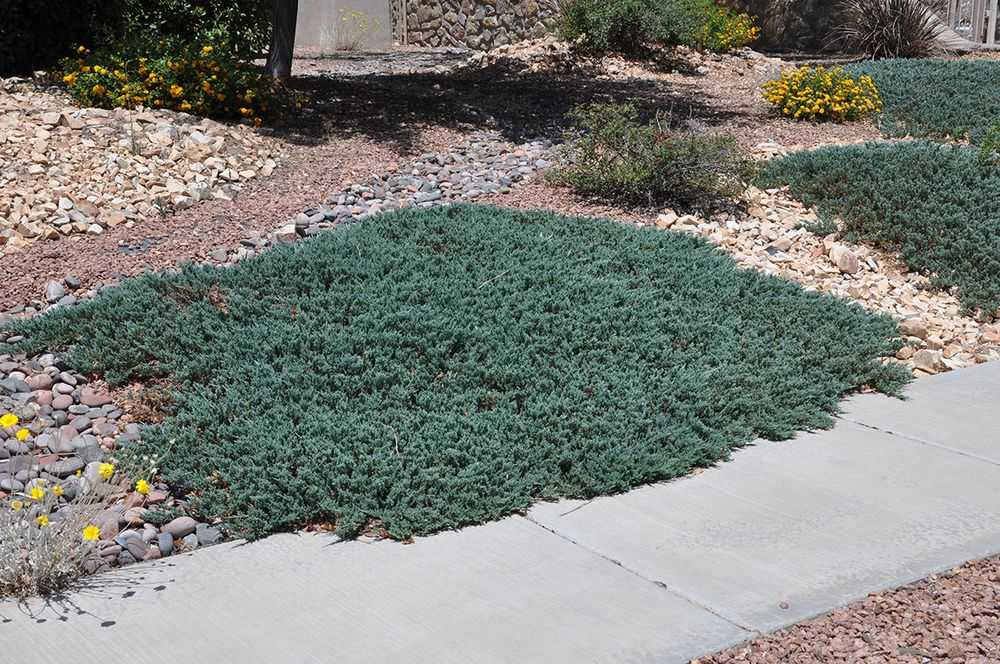 Как почвопокровное растение для оформления сада можно рассмотреть можжевельник горизонтальный или распростертый, родиной которого считается Северная Америка. Он имеет вид вечнозеленого стелющегося кустарника.