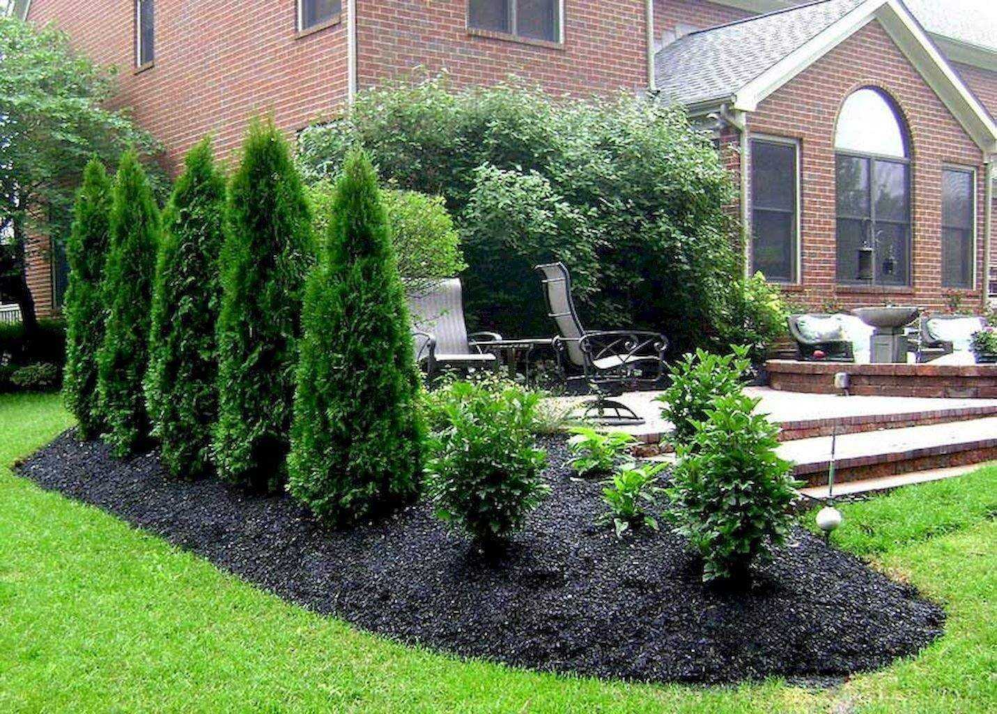 Можно окружить хвойники саженцами однотипных растений одного цвета или создать сложные формы, поиграв с геометрией или посадив по периметру растительный бордюр